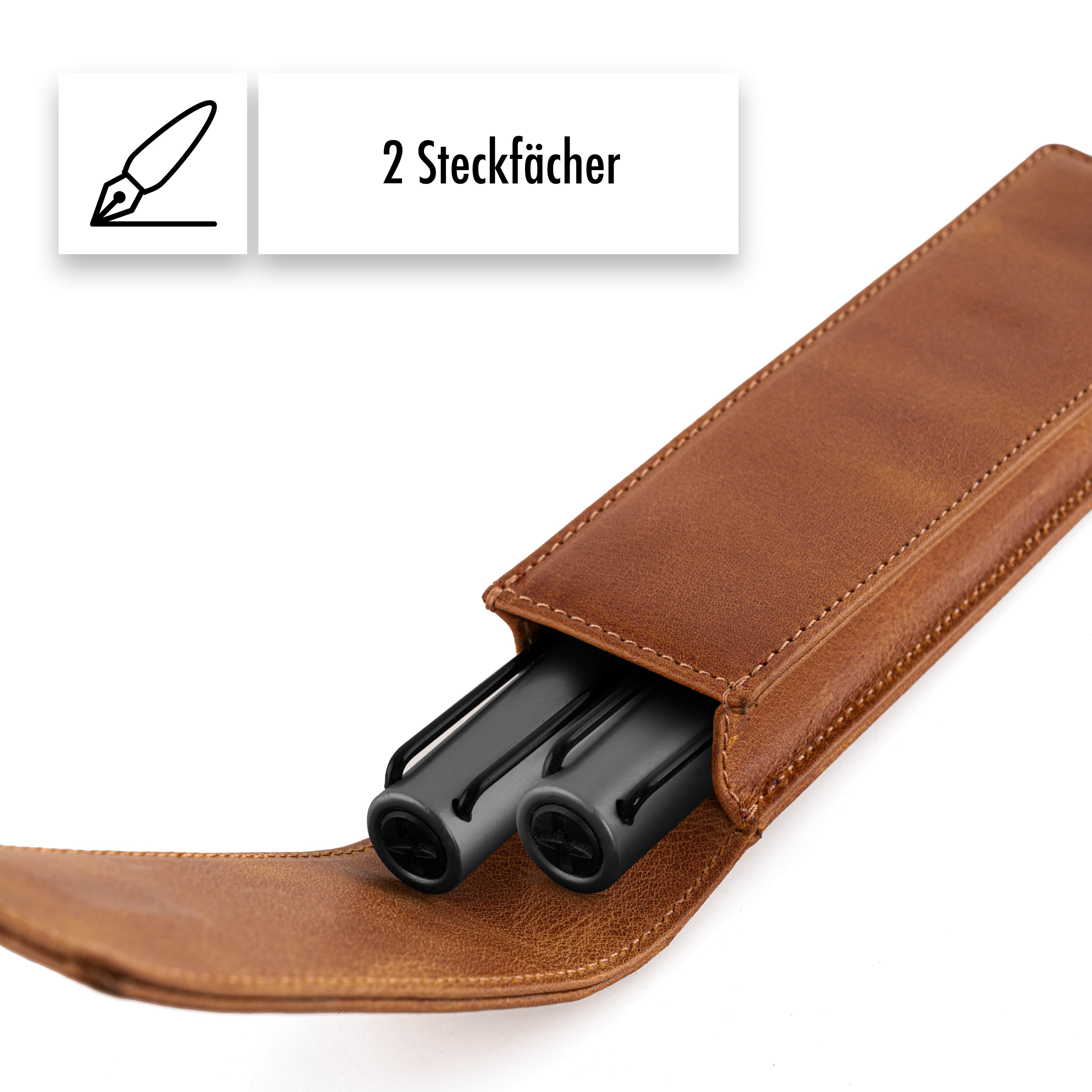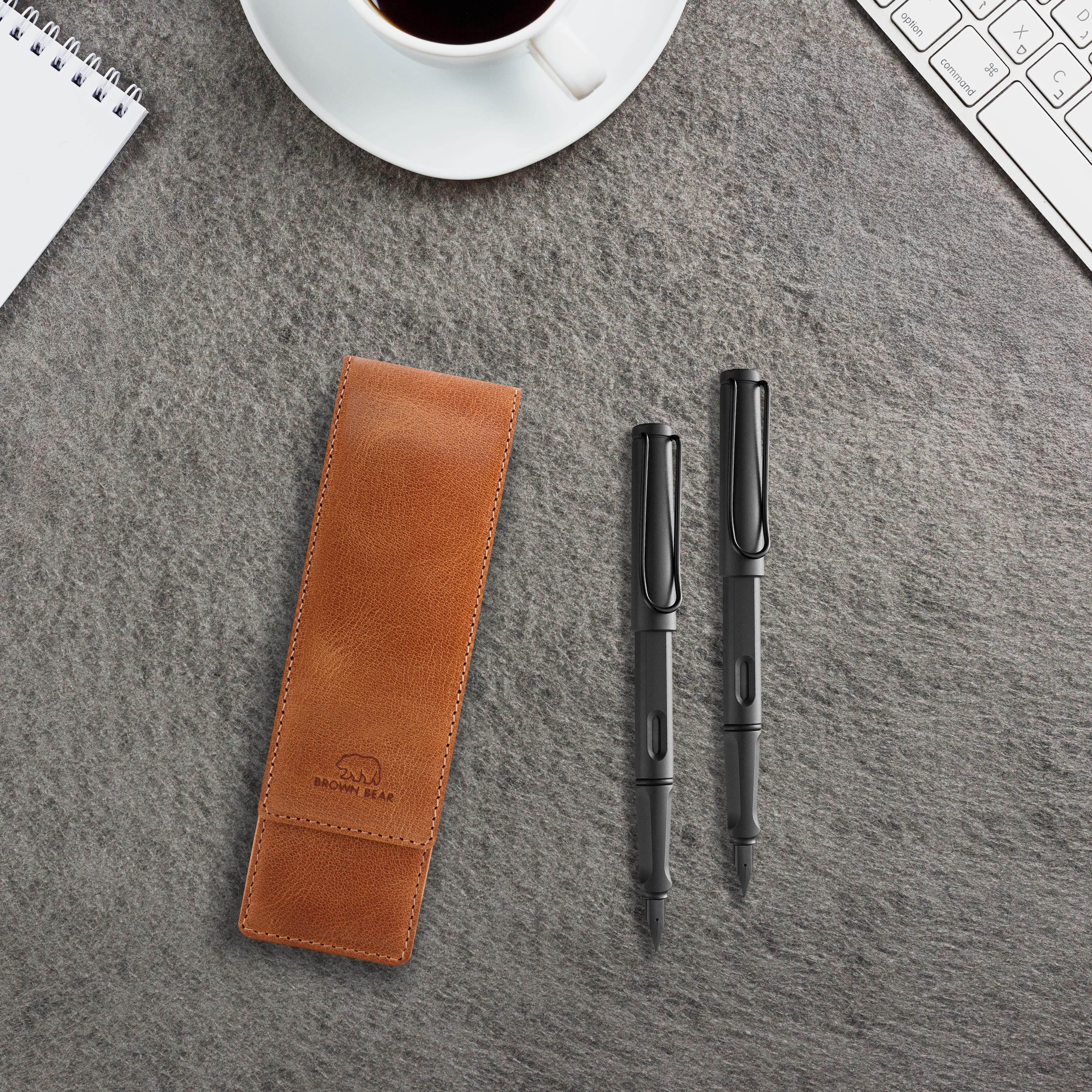p>Dieses edle Schreibetui aus echtem Rindsleder ist die perfekte Wahl für alle, die Qualität und Stil schätzen. Es eignet sich ideal für Kugelschreiber, Füllfederhalter, Druckbleistifte oder Rollerball und wird in Europa handgefertigt.