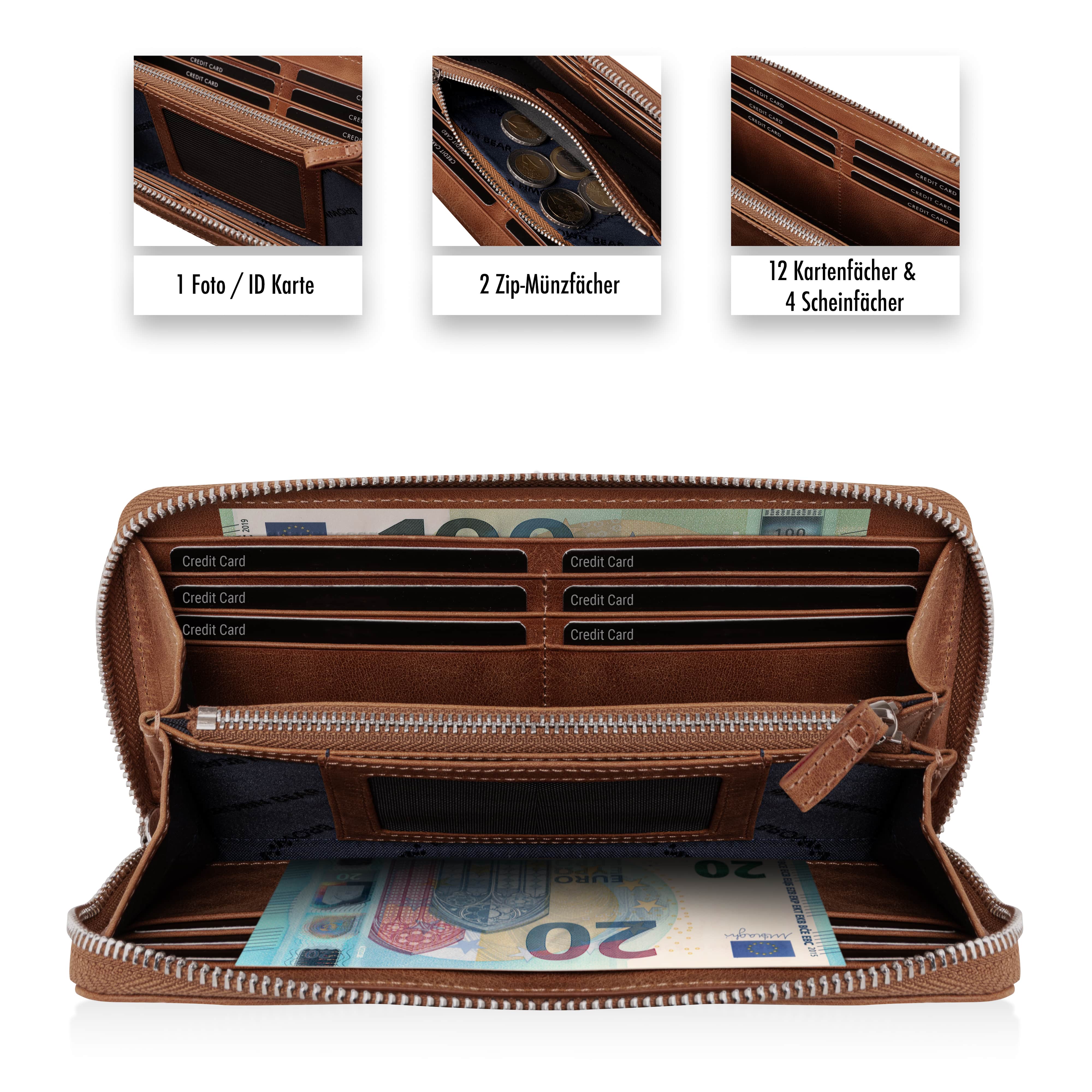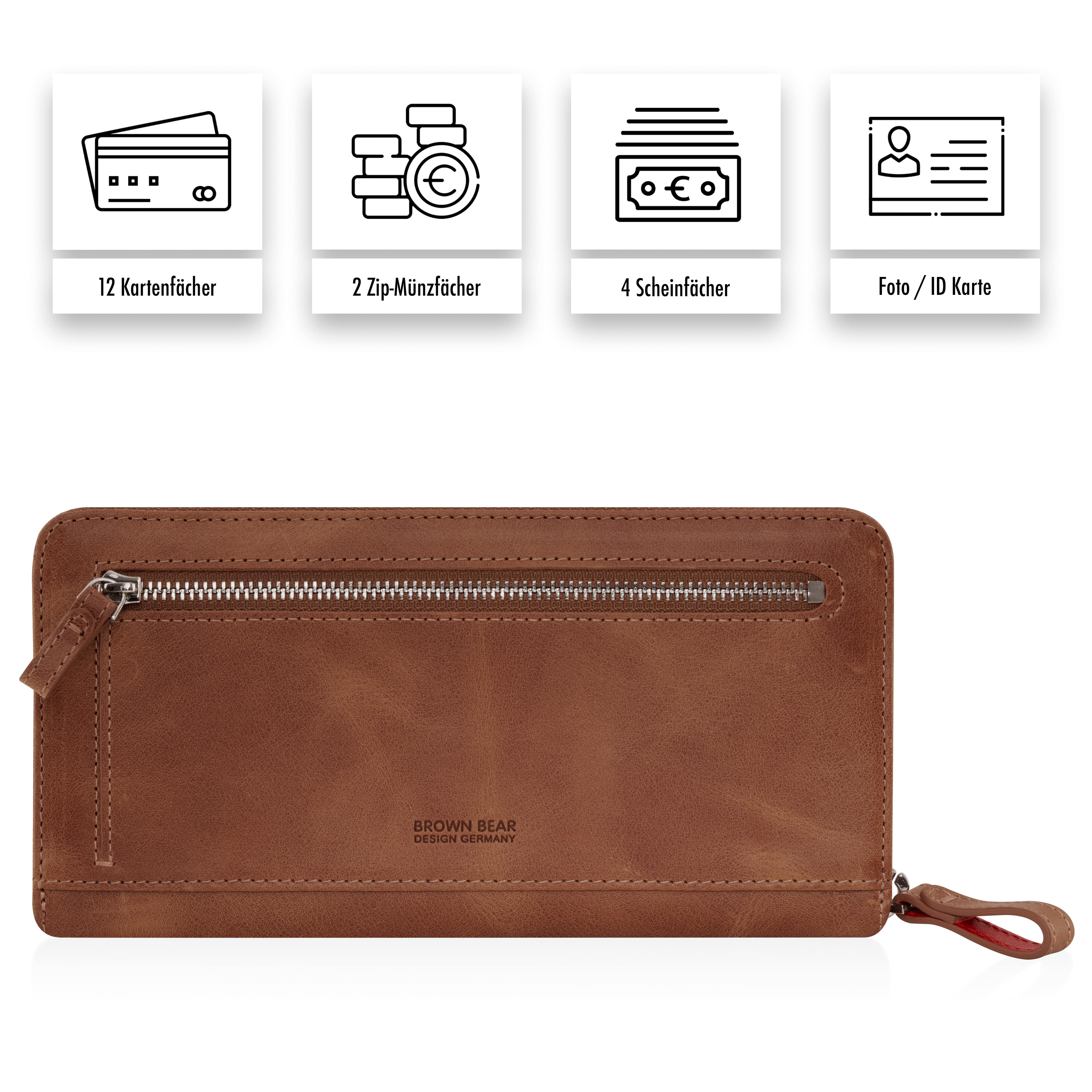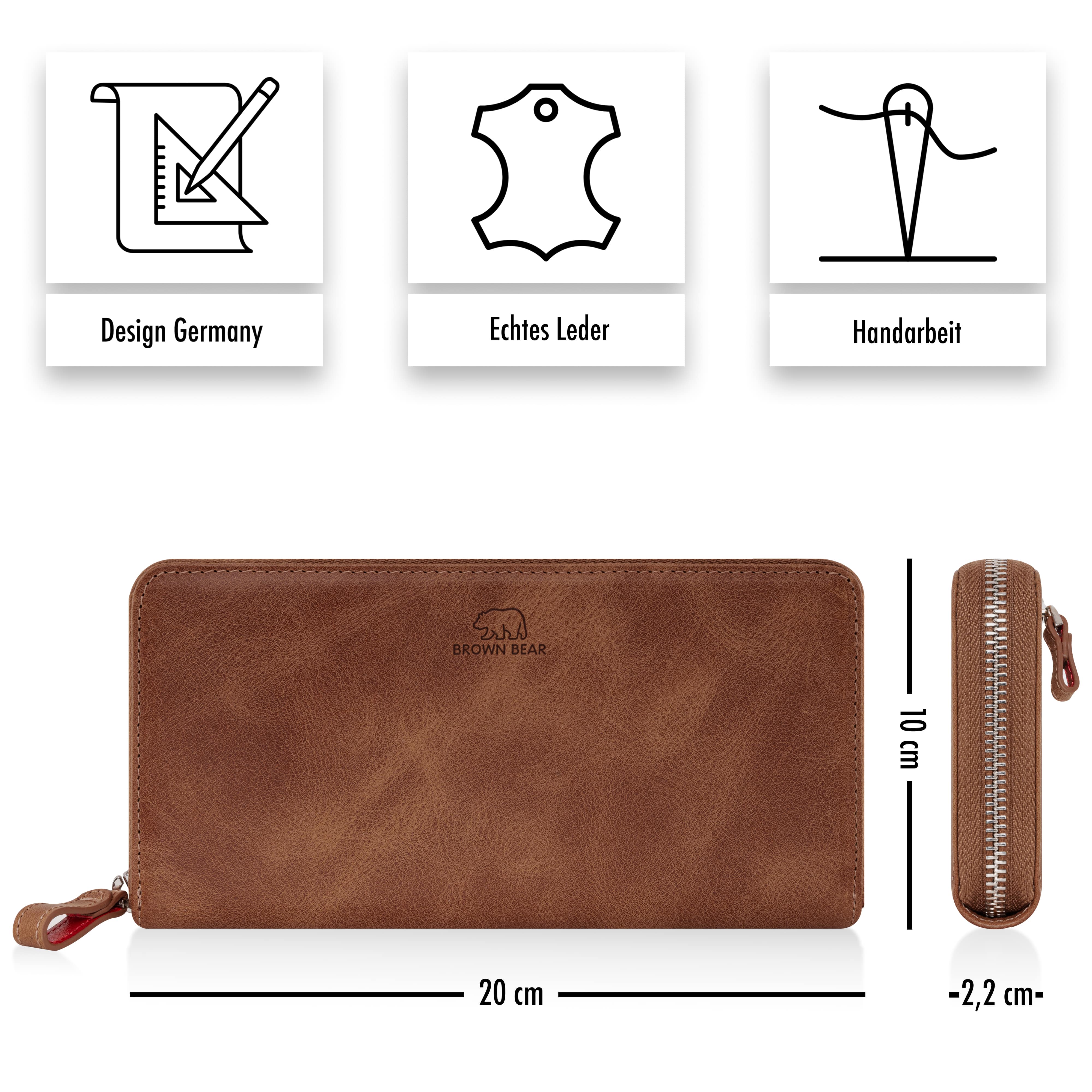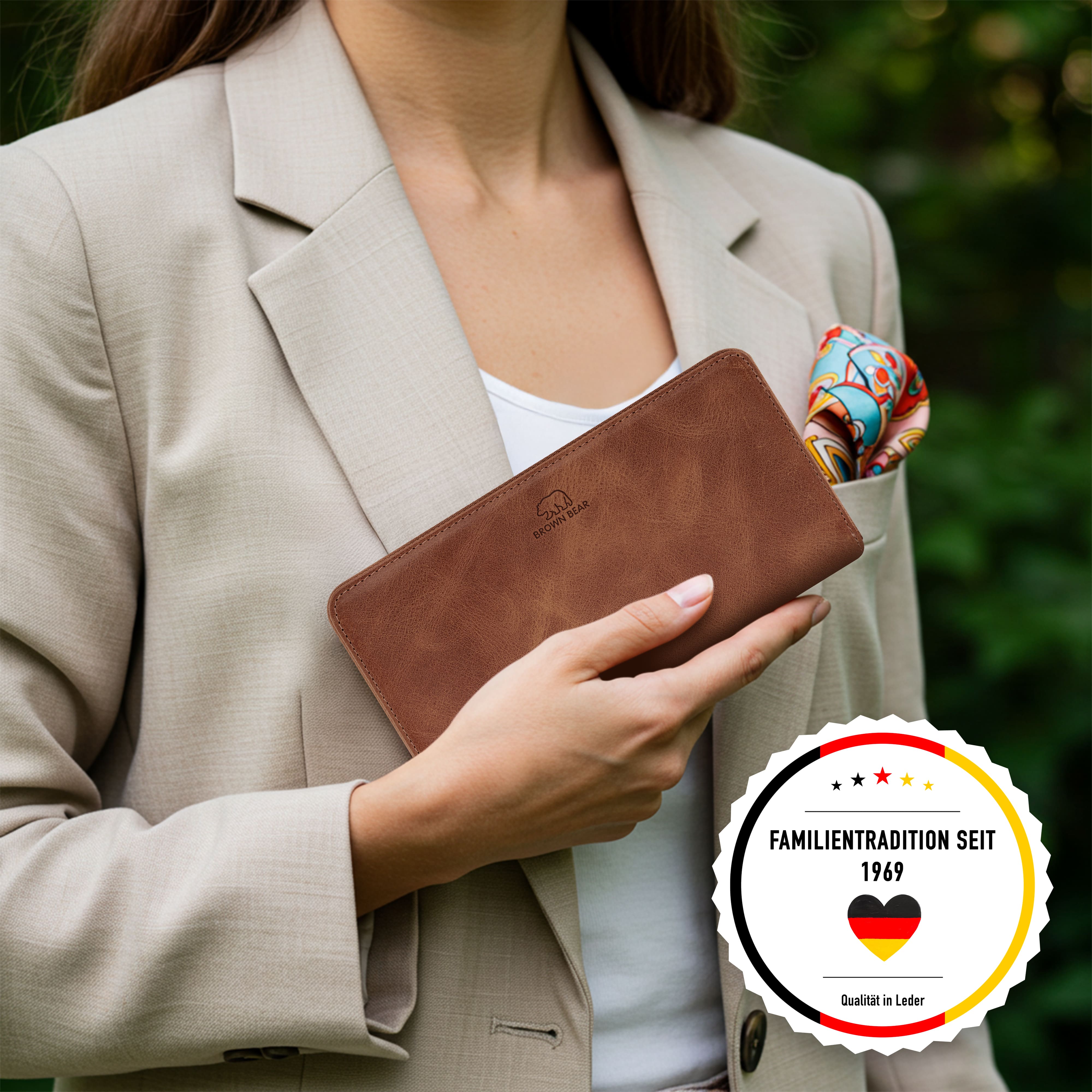BROWN BEAR Damen Geldbörse – Echtleder trifft Funktion
