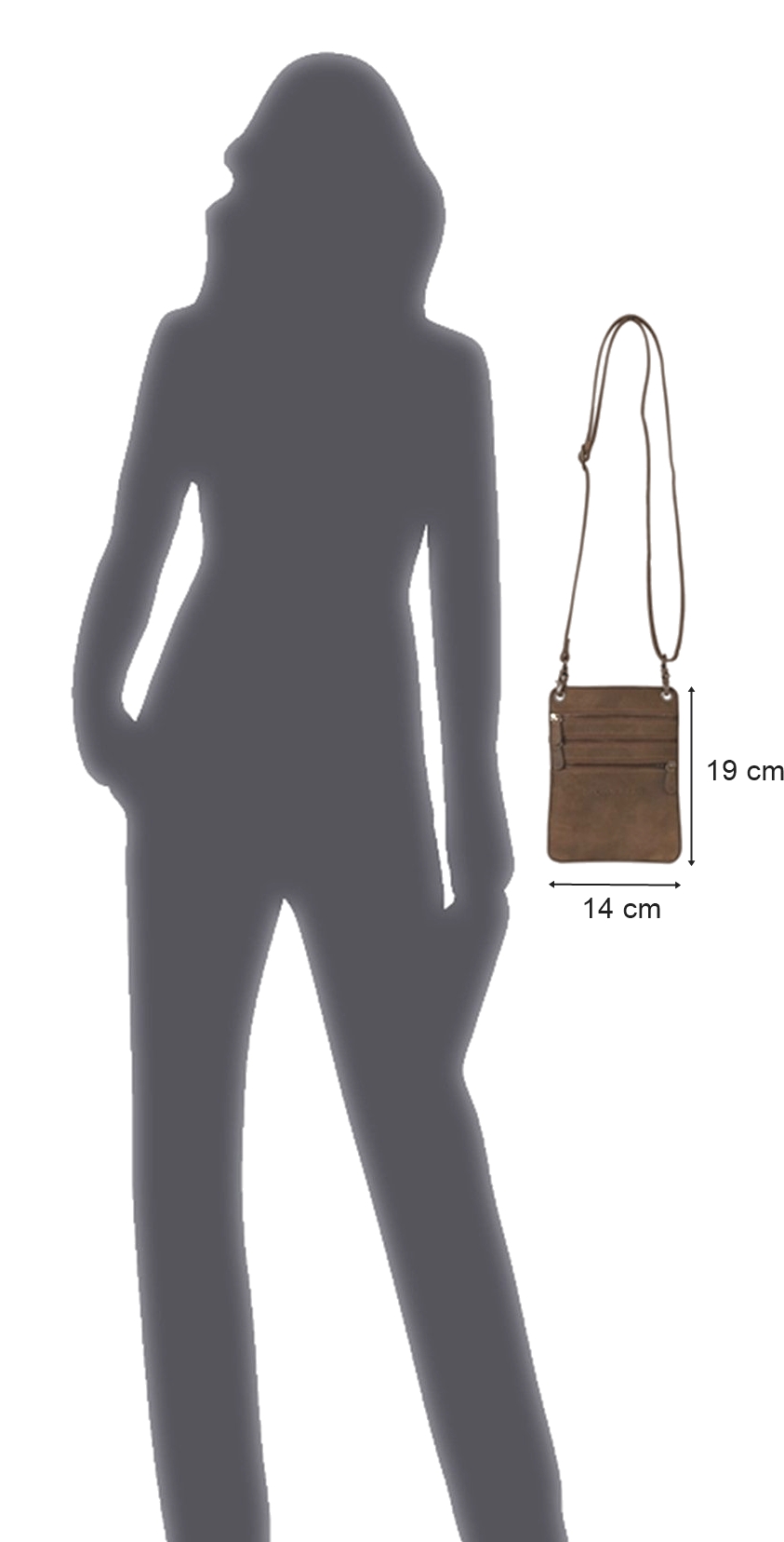 Maß des Taschenkörpers ohne Schulterriemen ca 14x19x1,5cm (BxHxT)